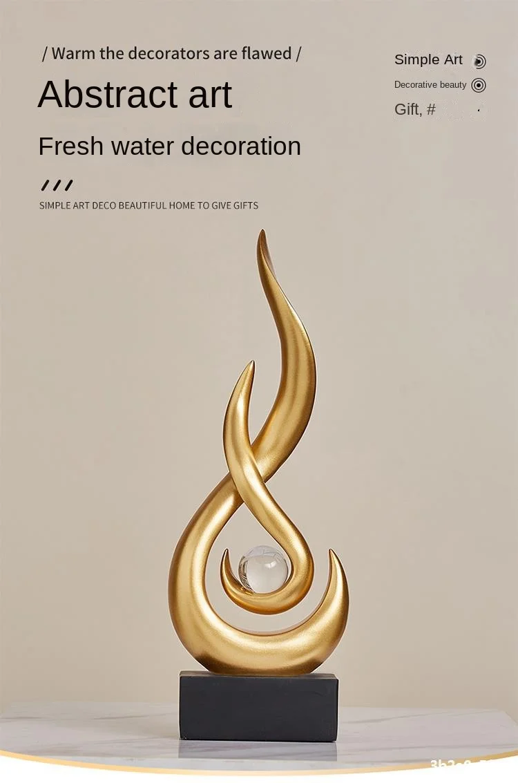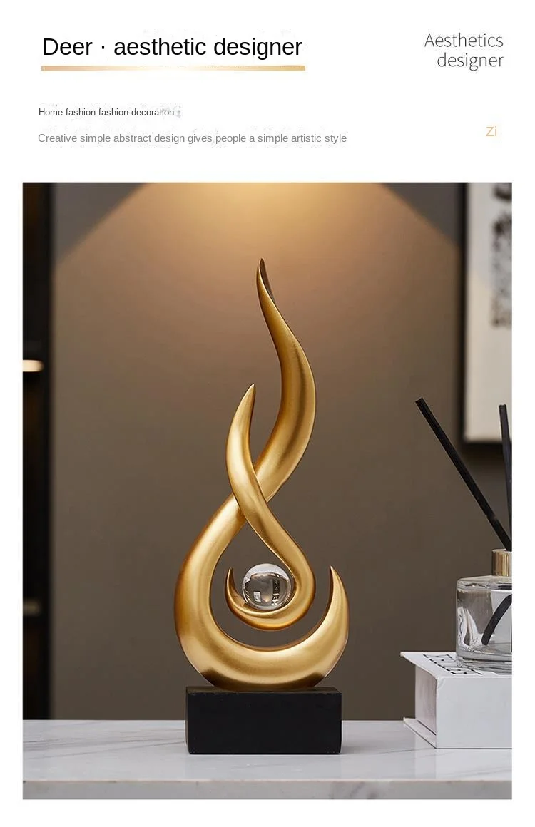 Abstract Orange Gold Ceramic Statue, Modern Decor Accents,Living Room Dining Room Office Coffee Table