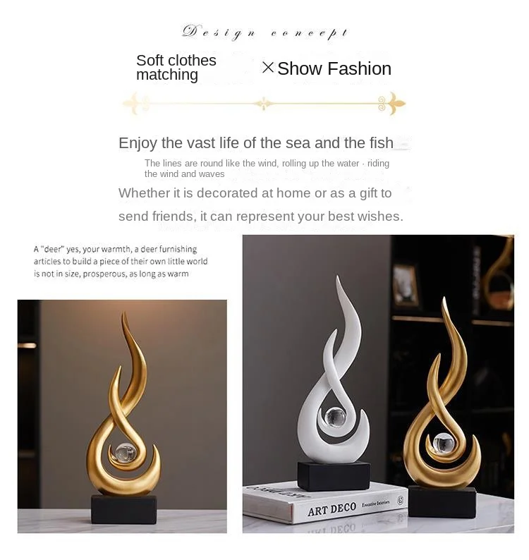 Abstract Orange Gold Ceramic Statue, Modern Decor Accents,Living Room Dining Office Coffee Table
